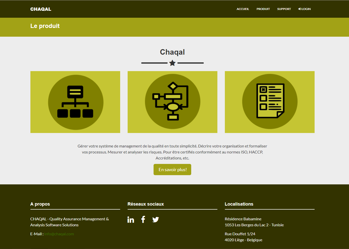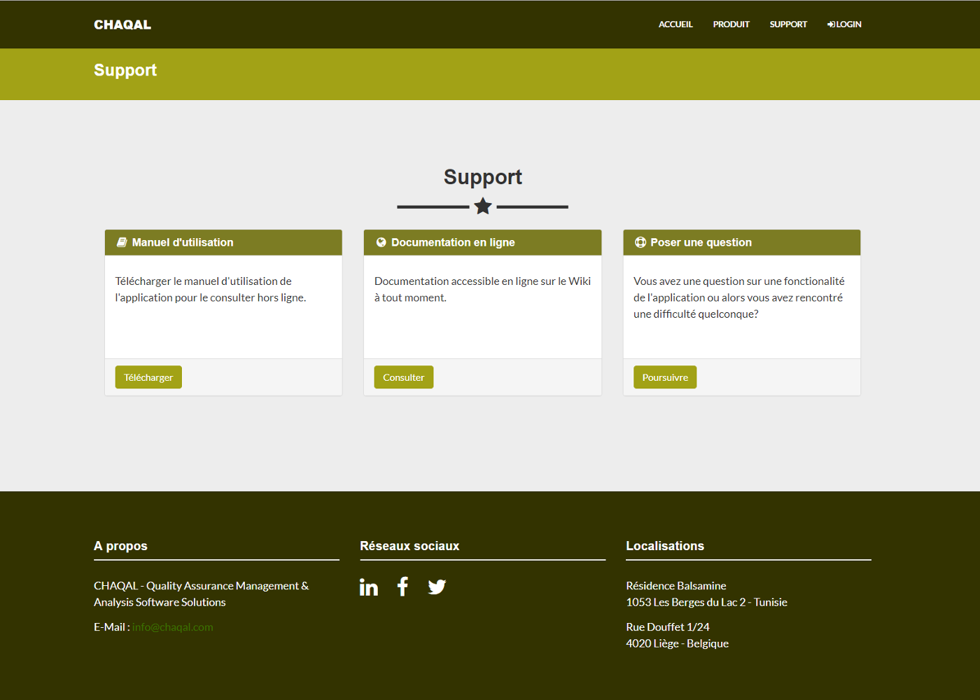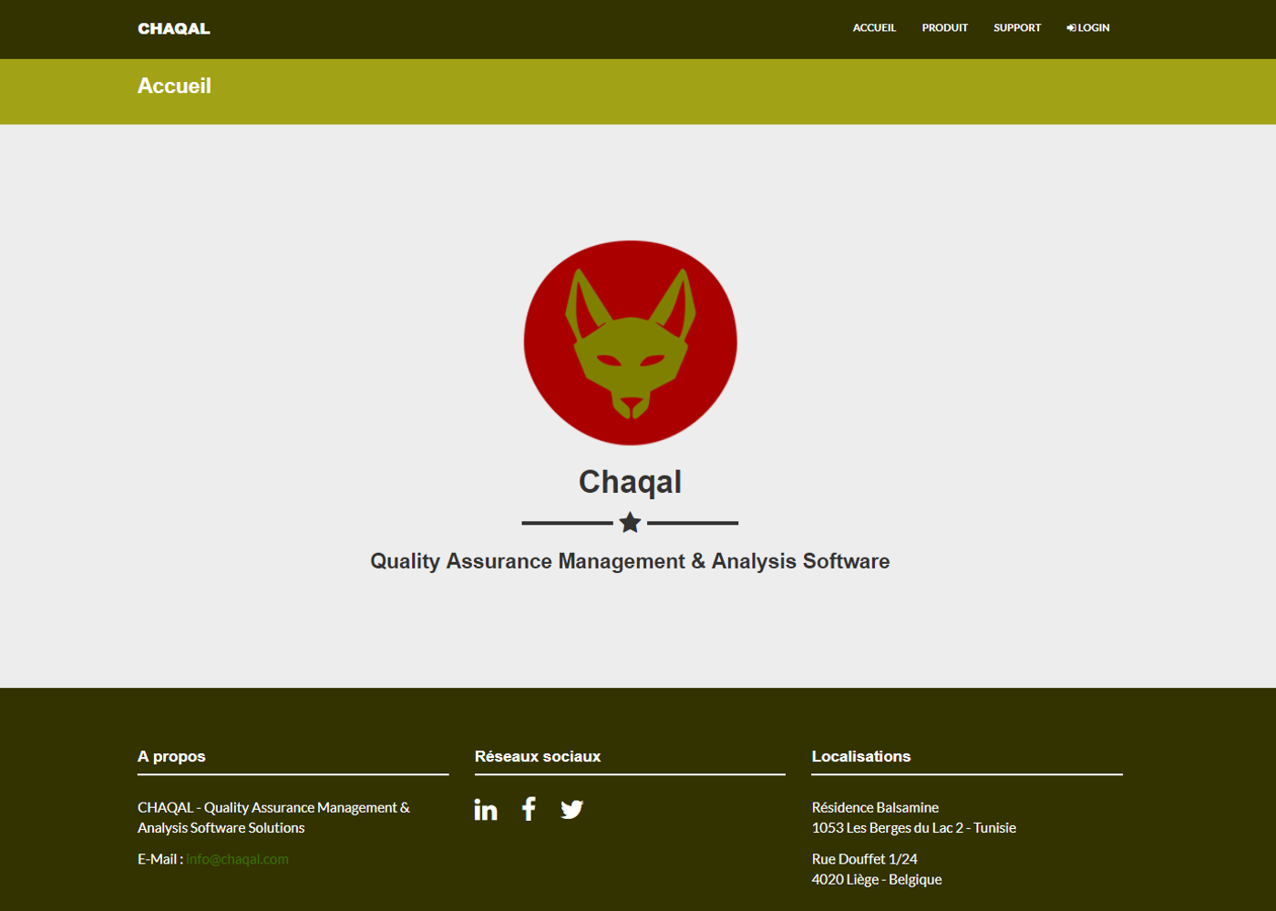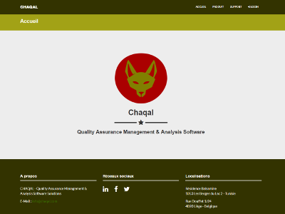 Site web du logiciel Chaqal - Quality Manager. Documentation en ligne. Back-office pour la gestion des comptes client et gestion des tickets d'incidents et de support technique